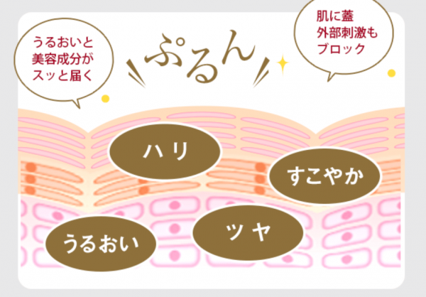 乾燥肌の表面・深部にまで、保湿美容成分をグングン届けてくれるのは、このゲルのお肌馴染みがバツグンなこと、長時間皮膚を保護する効果に優れているためです。