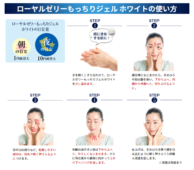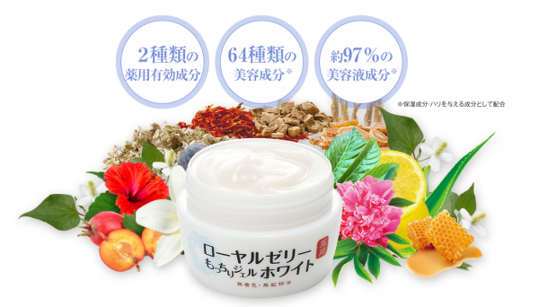 ローヤルゼリーもっちりジェルホワイトはシリーズ累計の販売数が650万個を超えた大ヒットアイテム!ローヤルゼリーもっちりジェルが進化し、さらに肌年齢に悩む女性に嬉しい美白成分がプラスされてできた薬用美白オールインワンジェルです!